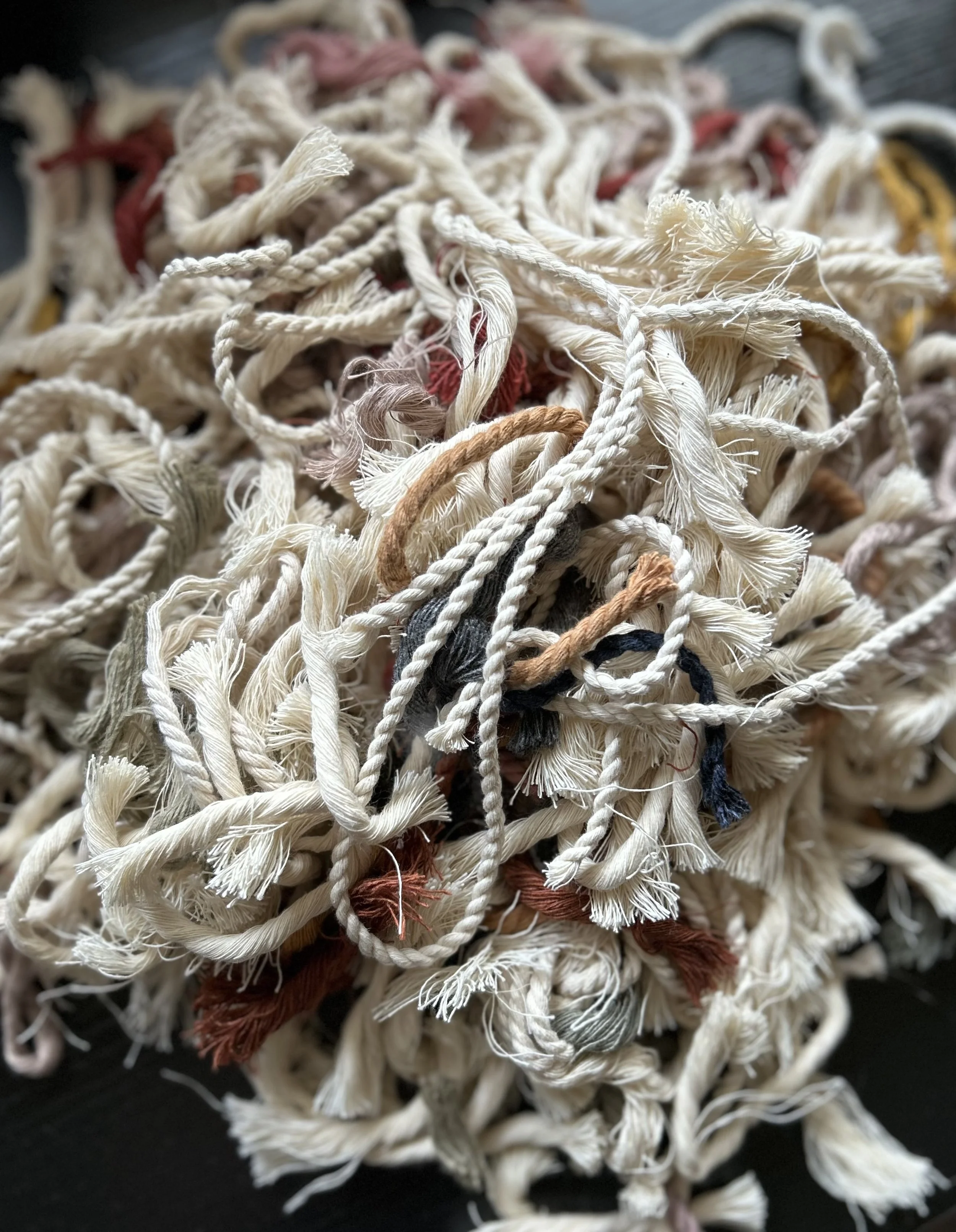 In this class, we'll upcycle scraps of macramé projects cord to make art! Decide on a design, or create as you go! Learn how to “draw” with cord and create a piece to hang on your wall or set on a shelf or desk.